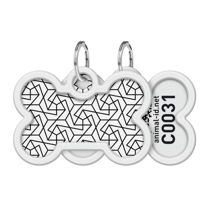 Адресник для собак и котов металлический WAUDOG Smart ID c QR паспортом, рисунок "Геометрия", кость, Д 40 мм, 28 мм