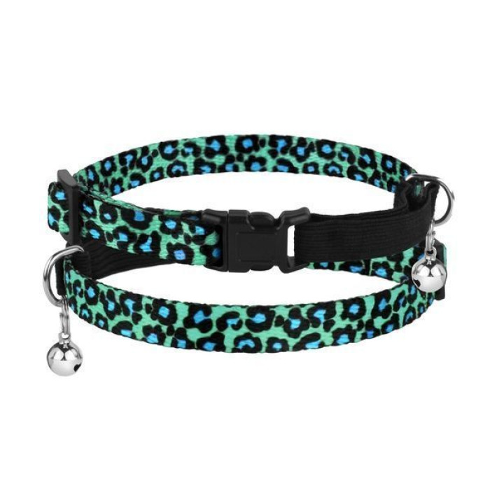Безопасный ошейник для котов BronzeDog Urban на резинке с колокольчиком, бирюзовый леопард
