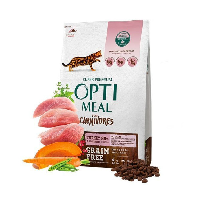 Беззерновой корм для взрослых кошек - ИНДЕЙКА и овощи, Optimeal