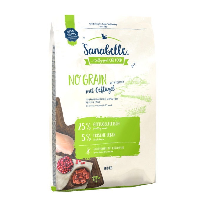 Разработан корм Бош Санабелль Беззерновой для кошек с пищевой непереносимостью и страдающих аллергией на еду. Для кошек, которые постоянно находятся в закрытых помещениях и при этом мало двигаясь - этот рацион как нельзя лучше подходит им из-за быстрой усвояемости. В сухом корме Бош Беззерновой нет глютена и сои и используются, только натуральные ингредиенты: свежее мясо домашней птицы. Поэтому эти корма так нравятся кошкам. Используемый жир и растительные волокна уменьшают слипание шерсти в желудке и облегчают выход волосяных шаров. Уменьшается объем порций и при этом облегчается переваривание пищи, так как из-за питательности корма Sanabelle No Grain, состоящего из чистого мяса, кошка быстро насыщается. Правильная работа пищеварительной системы, улучшение кишечной флоры, эластичность кожи, сохранение зрения, естественная сопротивляемость организма – все это благодаря сухому корму Бош Санабелль Беззерновой. А так же: стимуляция работы почек, поддержание водного баланса, предотвращение образования камней. Так как изобретенный водный транзит-агент, разработанный специально для кошек, ведущих малоактивный образ жизни - это изобретение фирмы Бош, лучший из кормов. Он поддерживает водный баланс в организме, снижает рН мочи, поддерживает содержание магния в норме.
