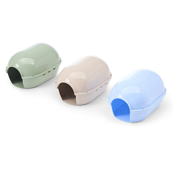 Конструкция домика весьма продумана. Один вход создает чувство защищенности для грызуна. По бокам предусмотрен ряд вентиляционных отверстий для свободного доступа воздуха в маленькое логово. Кроме того, домик собирается из 2-х частей, что удобно для периодического мытья и чистки.