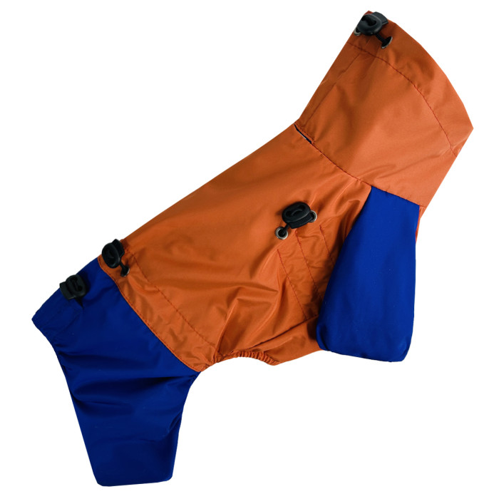 Дождевик для собак с фиксаторами оранжево-синий M-124