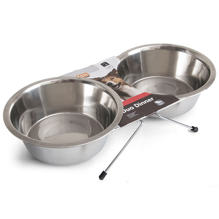 Flamingo Duo Dinner – две одинаковые по объему миски для собак, установленные на подставку. Удобная конструкция компактно организует место кормления вашего питомца и упрощает уход за ним.