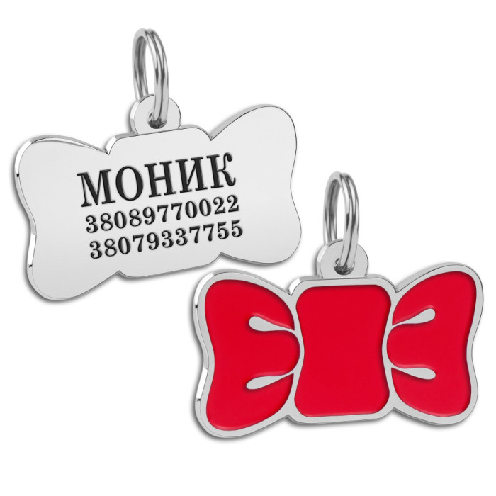 Эмалированный Адресник BronzeDog Бабочка для Собак Красный
