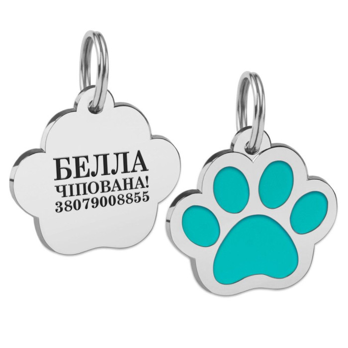 Эмалированный Адресник BronzeDog Лапка для Собак Бирюзовый