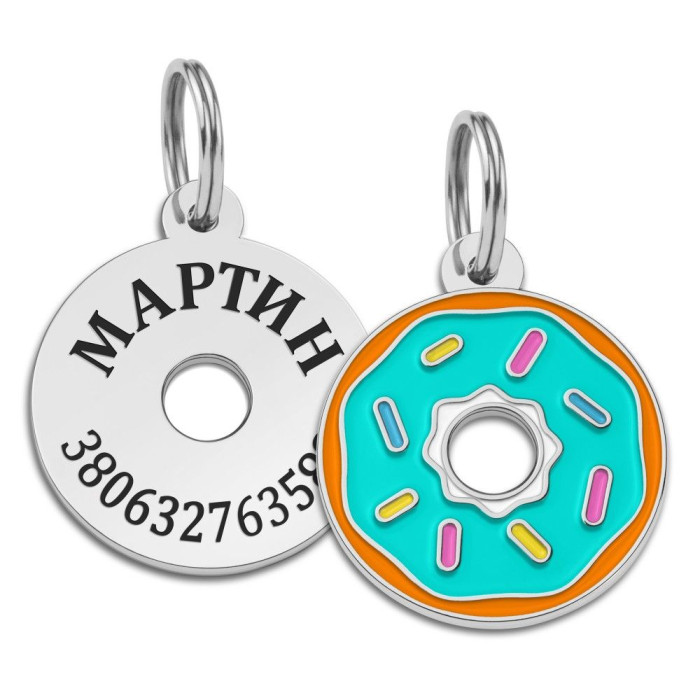 Эмалированный Адресник BronzeDog Пончик для Собак Бирюзовый
