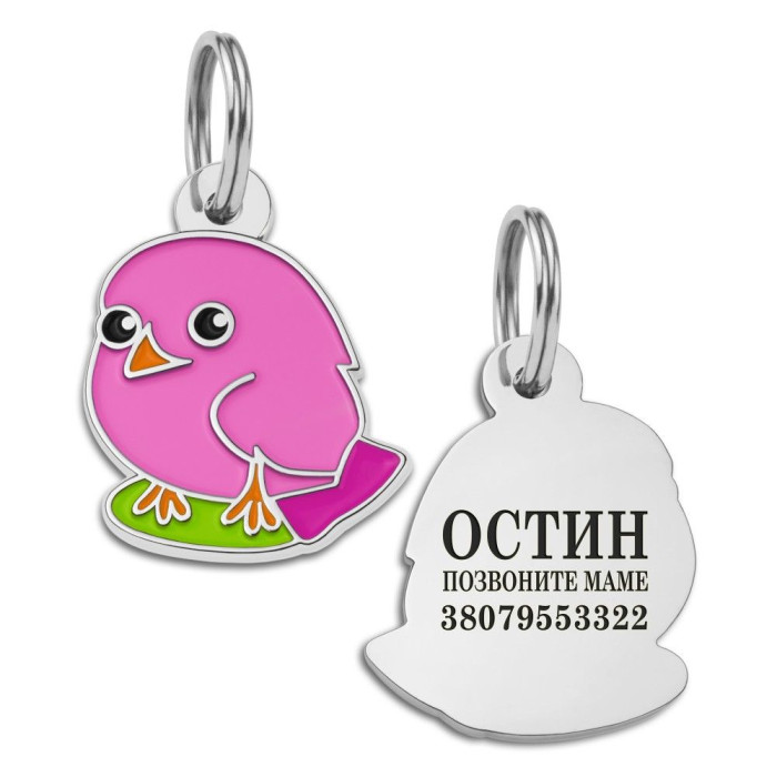 Эмалированный Адресник BronzeDog Птичка Розовый