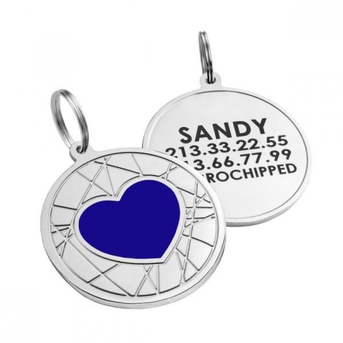 Эмалированный Адресник для Собак BronzeDog Сердце на Фоне Объемной Паутинки Синий