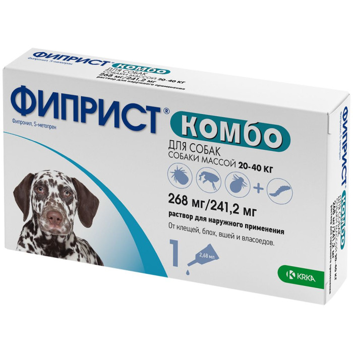 | Масса тела собаки, кг | Количество пипеток, шт | Объем пипетки, мл | Содержание действующих веществ (фипронил + S-метопрен), мг |