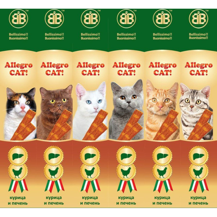 Жевательные колбаски для кошек Аllegro Cat с курицей и печенью 6х5гр