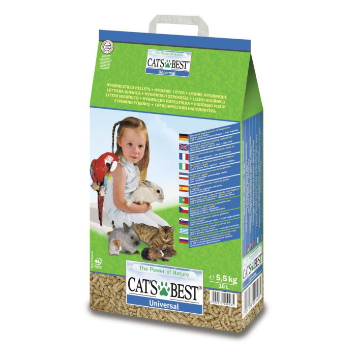 Универсальное использование для большинства мелких пород животных. Мы рекомендуем Cat's Best Universal в качестве наполнителя для домашних хозяйств, которым приходится одновременно заботиться о нескольких разных мелких животных. Благодаря высокой мощности впитывания Cat's Best Universal также идеально подходит в качестве дополнительной подстилки для влажных помещений, таких как поилки и т.п. в животноводческих помещениях. Подходит для грызунов, птиц и кошек. Изготовлен из 100% растительных волокон.