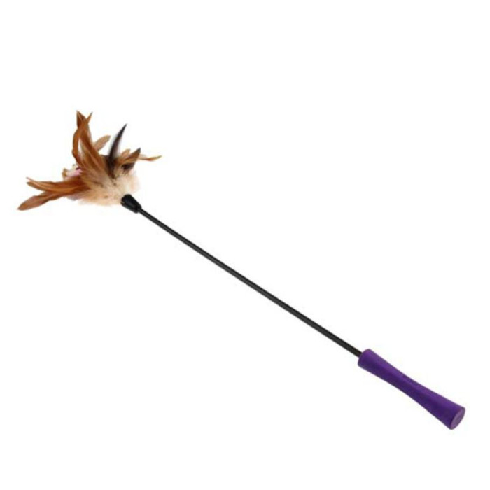 Игрушка для кошек на стеке, со звуковым чипом, с мышкой и перьями. Отлично подойдет для веселых игр с вашим питомцем.