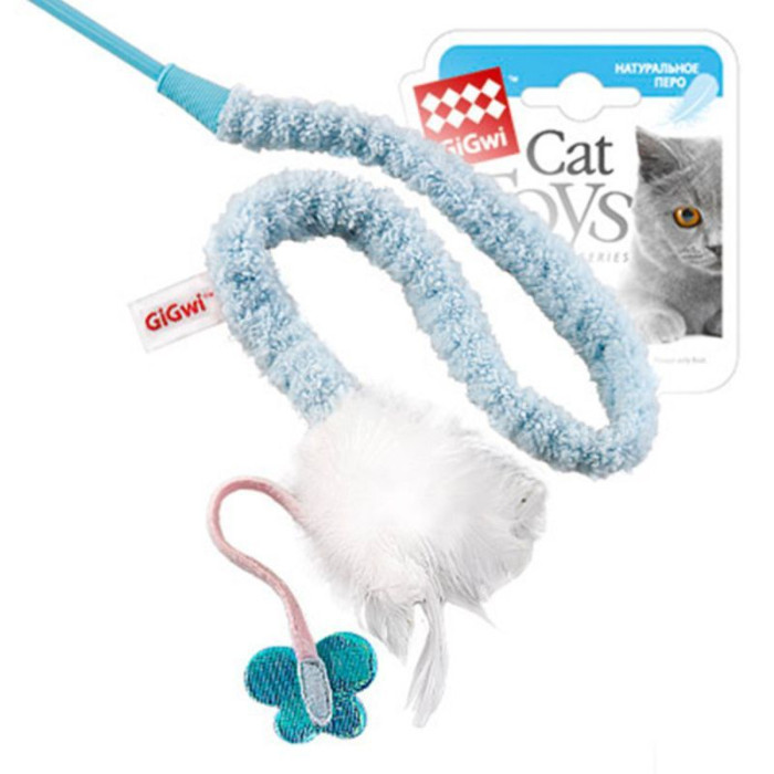 Игрушка для котов Дразнилка с перьями на стеке GiGwi Teaser, перо, пластик, текстиль, 73 см