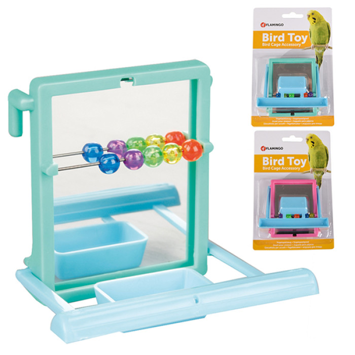 Игрушка для попугаев зеркало с жердочкой Flamingo (ФЛАМИНГО) MIRROR PERCH, пластик 10х7х9 см