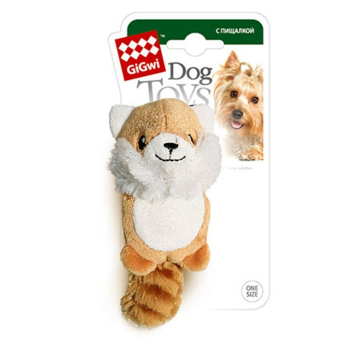 Игрушка для собак Лисичка с 2-мя пищалками GiGwi Plush, плюш, искусственный мех, 9 см
