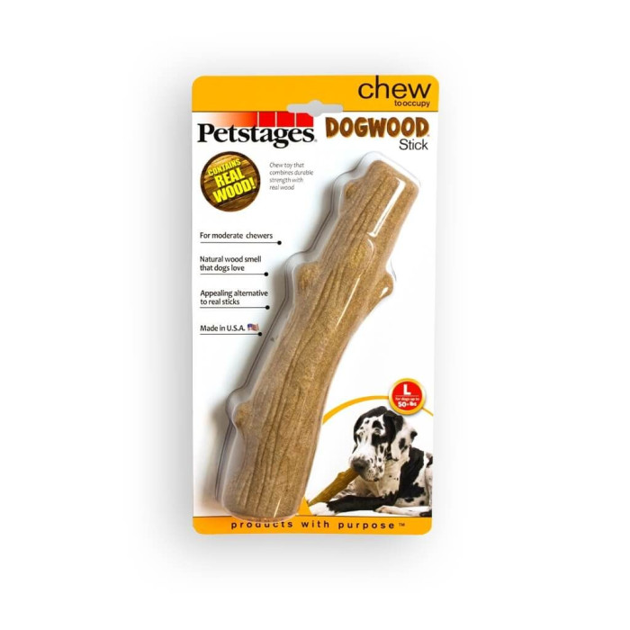 Дог Вуд Стик от Петстейджеса удовлетворяет естественный инстинкт собаки грызть. Игрушка Дог Вуд Сток Крепкая Ветка имеет вкус и аромат натурального дерева, но не оставляет заноз, как от обычных деревянных ветвей. Материал, из которого изготовлена ??ветка (Dogwood material) изготовлен в США, не содержит свинца и фталатов, поэтому Вы можете не волноваться давая ветку питомцу, он будет счастлив! Прочная ветвь доступна в четырех размерах от миниатюрной до большой, поэтому каждая собака может выбрать свою идеальную ветку!