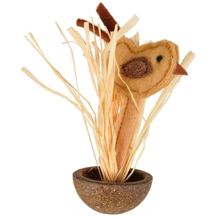 Если ваш кот – настоящий охотник, ему непременно понадобится такая добыча как игрушка Flamingo Catnip Bird. Это мягкая птичка, которая притаилась в высокой «траве» из соломы. Птичий «букет» закреплен в полусфере из прессованной кошачьей мяты, что позволит игрушке раскачиваться как неваляшке при толкании осторожной кошачьей лапкой. Если лапа будет более уверенна и агрессивна, то игрушка будет катиться по непредсказуемой траектории, шелестеть бумагой и мелькать птичкой. Как и всякую добычу, кот может носить игрушку в зубах.