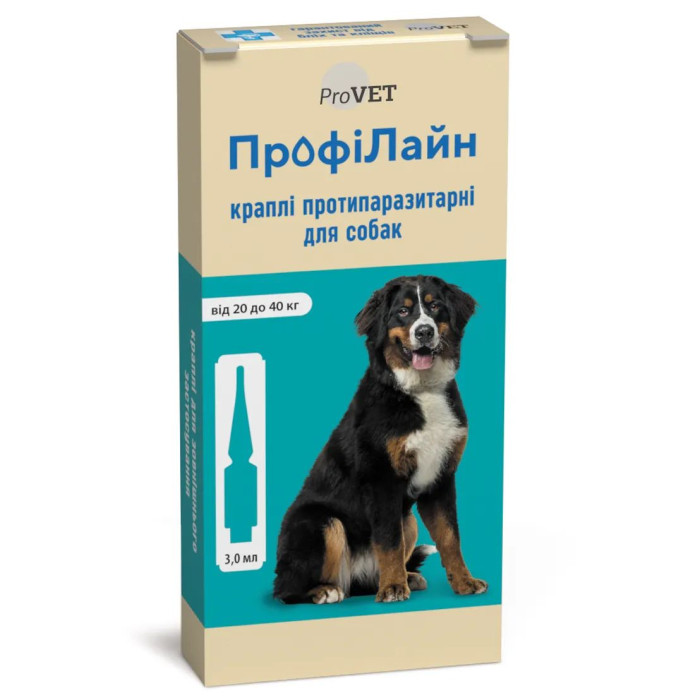 Капли на холку ПрофиЛайн для собак 20кг-40кг (4 пип/3,0мл), инсектоакарицид