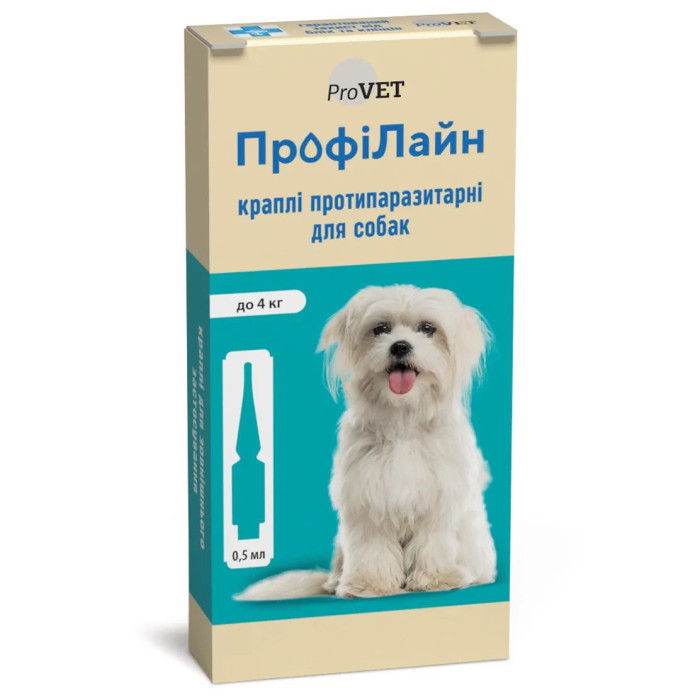 Капли на холку ПрофиЛайн для собак до 4кг (4 пип/0,5мл), инсектоакарицид