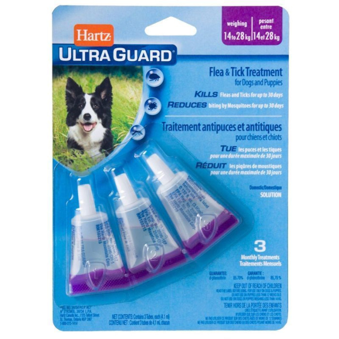 Капли от блох и клещей для взрослых собак и щенков  14-28 кг, Hartz Ultra Guard
