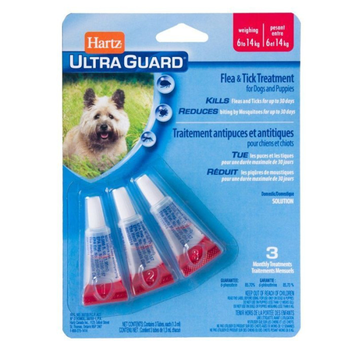 Капли от блох и клещей для взрослых собак и щенков 6-14 кг, Hartz Ultra Guard