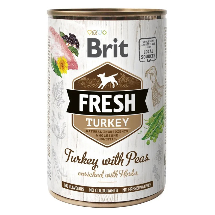 Консервы Brit Fresh Dog с индейкой и горохом для собак, 400г