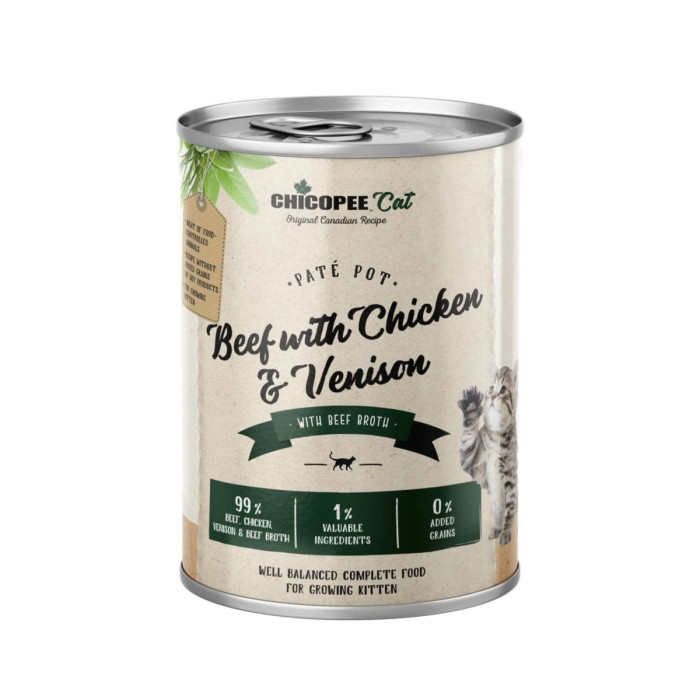 Консервы CHICOPEE представляют собой полнорационный влажный корм для щенков и взрослых кошек, производимых на заводе в Германии из высококачественных мяса и овощей.