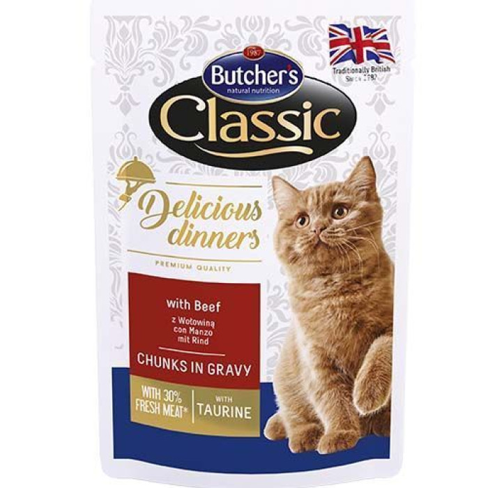 Консервы для кошек Butchers Classic Delicious Dinners, говядина в соусе, пауч 100г