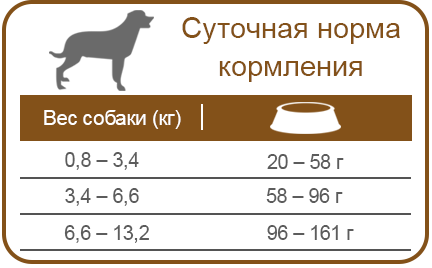 Корм вводится в рацион собаки постепенно на протяжении 5-7 дней. Нормы кормления могут меняться в зависимости от возраста, активности и темперамента вашего питомца.