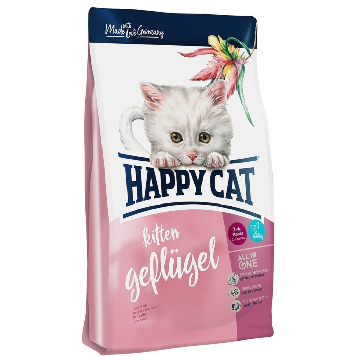 Happy Cat Kitten Geflugel - идеальная пища для чувствительных котят с 5 недель до 6 месяцев. Адаптированный рецепт создает лучшую основу для гармоничного роста. Этот корм готовится из вкусной домашней птицы и лосося. Специальные маленькие крокеты облегчают жевания. Конечно, мы гарантируем лучший вкус, который понравится вашему котику. Еще один плюс: целостная и уникальная концепция естественной жизни Happy Cat ®.
