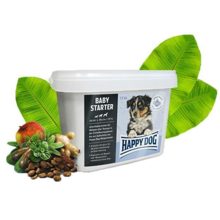 Оптимально сбалансированное питание для Щенков - лучшая основа для здорового развития! Рецептура корма Baby Starter с содержанием протеина 29% одобрена ветеринарными врачами. Happy Dog Baby Starter содержит высококачественное мясо птицы и лосося, а также ценного новозеландского моллюска. Этот корм - беспроблемный и щадящий для питания щенков всех пород, начиная с 4-й недели жизни. Примерно с 5-6 недель щенкам постепенно меняют корм соответствующий корм Happy Dog Baby. Разнообразный и сбалансированный полнорационный корм для щенков с уникальной формулой Happy Dog Natural Life Concept® надежно предотвращает явления недостатка в организме. Изготовлен в Германии в условиях строгого контроля качества!