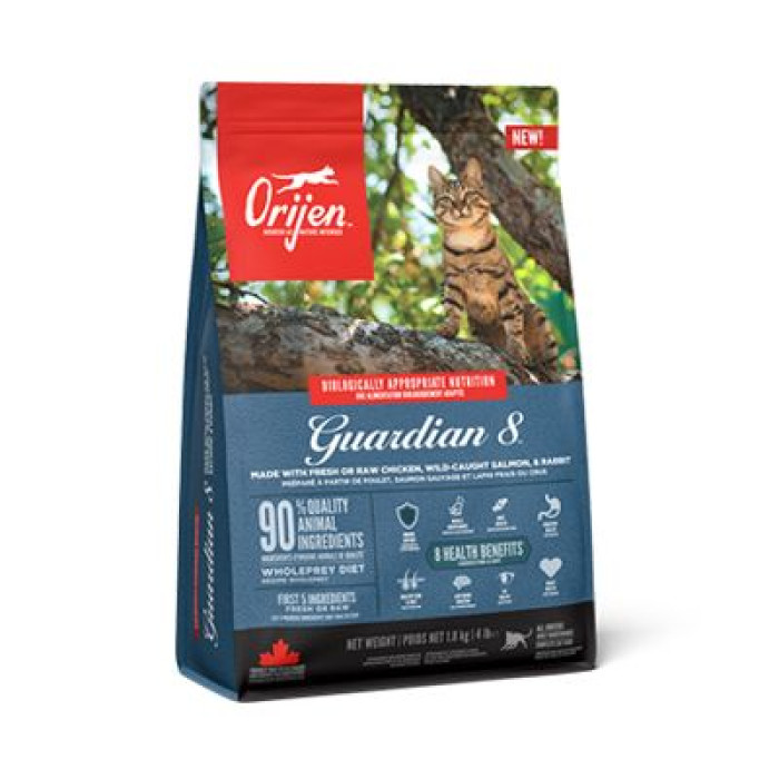 ОРИЖЖЕН Гвардиан 8 – это питательный рацион, специально созданный, чтобы противостоять основным недугам кошек, с помощью качественных ингредиентов.
