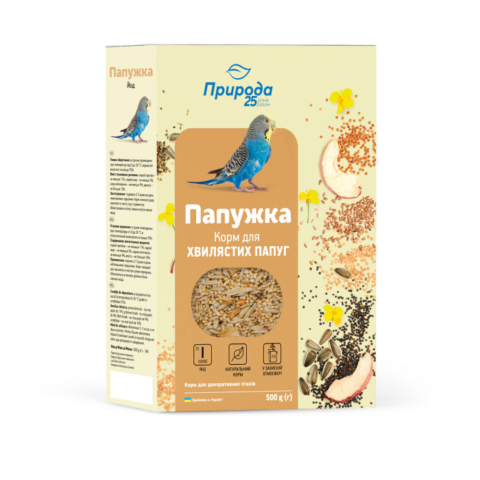 Рецептура корма разработана на основе рекомендаций ведущих специалистов по разведению и содержанию декоративных птиц. Набор зерновых культур соответствует рациону птиц в естественных условиях. Регулярное употребление корма позволяет избежать авитаминозов, неправильной или затяжной линьки, обеспечивает птицам хорошую кондицию. Йод нормализует обмен веществ, помогает избежать расстройств, связанных с содержанием птиц в клетке.