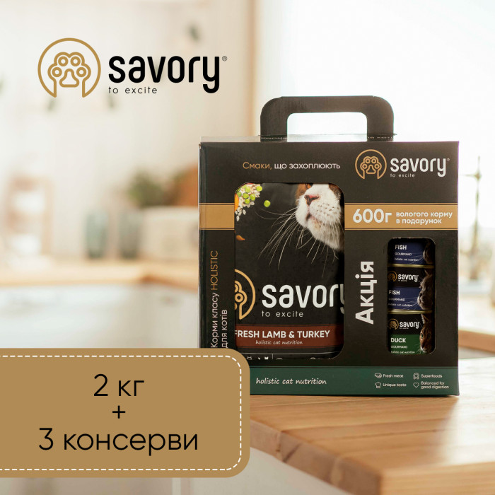 Сухой корм для кошек Savory содержит свежее мясо ягненка и дегидратированное мясо индейки, ягоды, фрукты и овощи. Эти компоненты созданы природой, чтобы котик смог утолить голод, получив необходимые питательные вещества без риска возникновения аллергии.