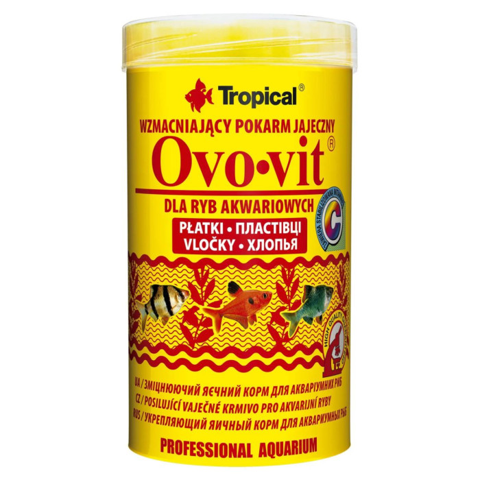 Корм в хлопьях, с высоким содержанием яичного желтка для всех аквариумных рыб Tropical Ovo-vit 250ml /50g