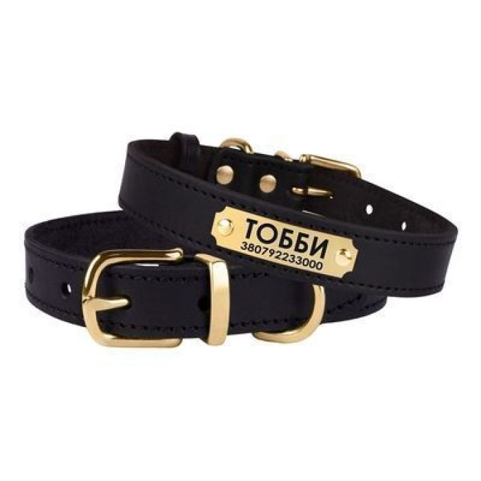 Кожаный ошейник для собак с литой латунной фурнитурой, черный 2XS 18-25 см