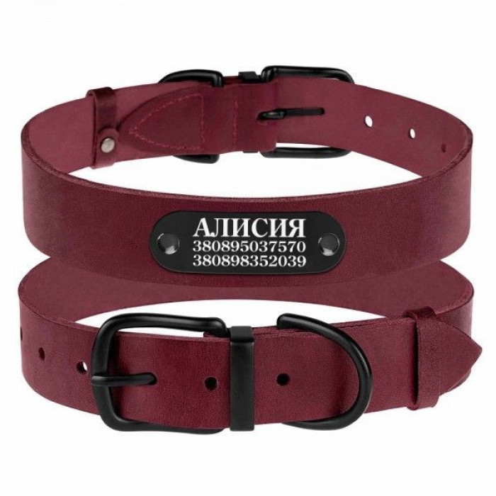 Кожаный ошейник для собак с металлической фурнитурой, бордовый L 38 - 51 см