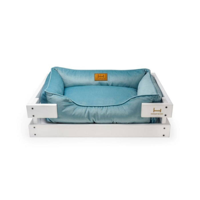 Лежак Dreamer White + Blue Velur с деревянным каркасом