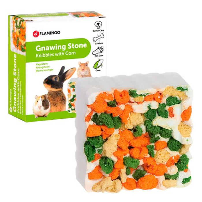 Почему стоит купить минеральный камень для грызунов Flamingo Knibbles КУКУРУЗА: