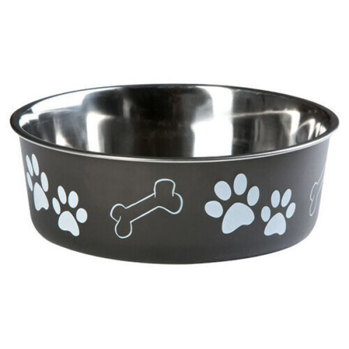 Миска для собак Flamingo Bella, нержавейка, черный с рисунком лап, 2,2л, 23 см