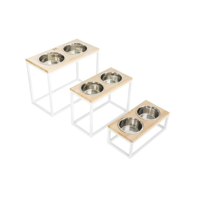 Миски на подставке Dinner Bar, натуральное дерево с белым металом