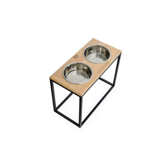 Миски на подставке Dinner Bar, натуральное дерево с черным металом