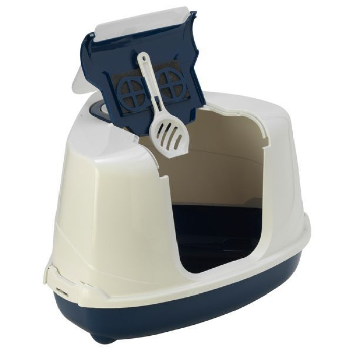 Закрытый туалет для котов изготовлен из качественного пластика, который не впитывает запахи, легко моется, имеет длительных срок эксплуатации.