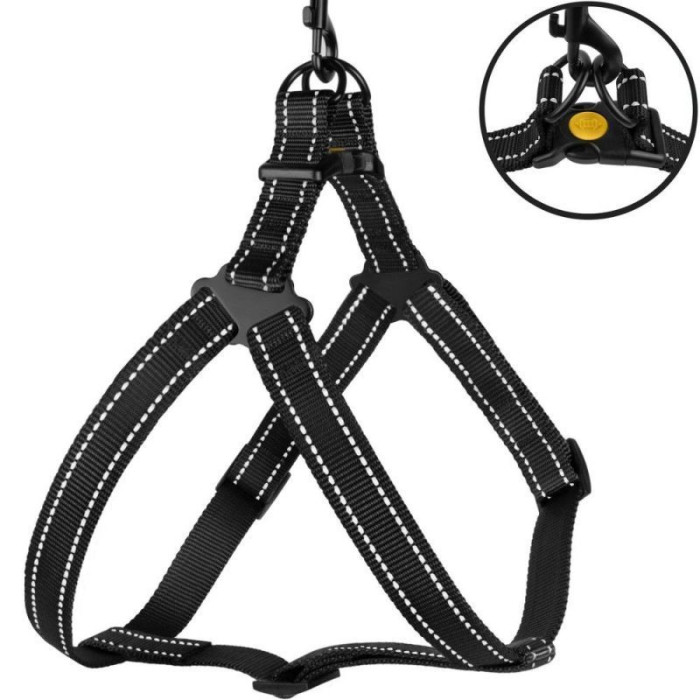 Нейлоновая шлея для собак BRONZEDOG ACTIVE, черная со светоотражением S 40-53 см