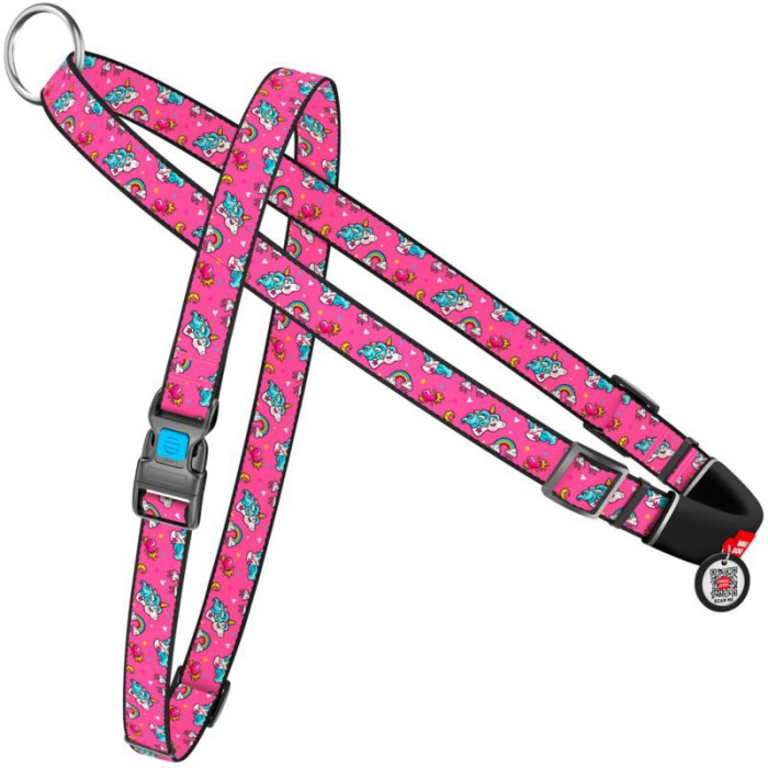 Нейлоновая шлея с ручкой для собак WAUDOG Nylon с QR паспортом, с рисунком Единороги S 45-60 см
