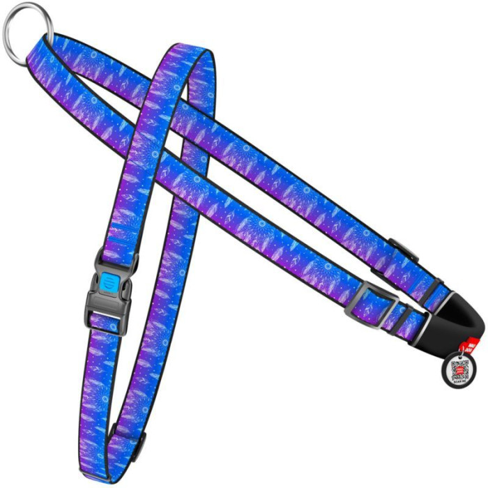 Нейлоновая шлея с ручкой для собак WAUDOG Nylon с QR паспортом, с рисунком Ловец снов S 45-60 см