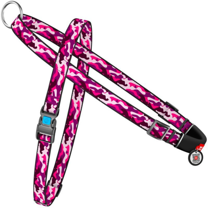 Нейлоновая шлея с ручкой для собак WAUDOG Nylon с QR паспортом, с рисунком Розовый камо S 45-60 см