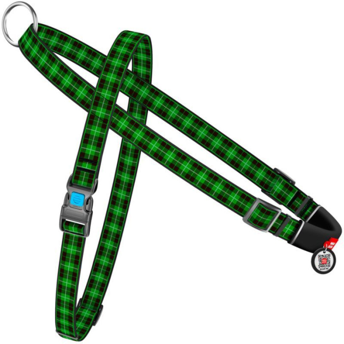 Нейлоновая шлея с ручкой для собак WAUDOG Nylon с QR паспортом, с рисунком Шотландка зеленая M 55-80 см