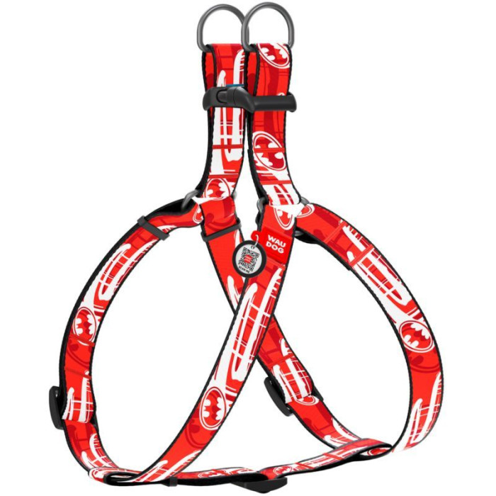 Нейлоновая шлея WAUDOG Nylon с QR паспортом, рисунок "Бэтмен", для собак и кошек XS 28-40 см