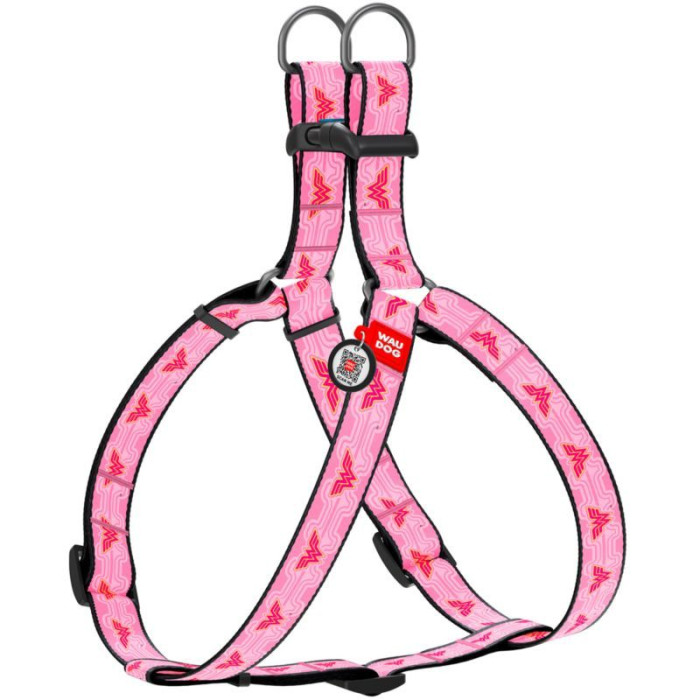 Нейлоновая шлея WAUDOG Nylon с QR паспортом, рисунок "Чудо-женщина 1", для собак и кошек XS 28-40 см
